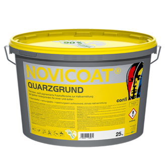 Novicoat® Quarzgrund ist eine feinraue, weiß pigmentierte Putzhaftbrücke für mineralische Untergründe im Innen- und Außenbereich, wie Putz, Gips, Beton, Kalksandstein sowie Holzspanplatten. Zur Haftvermittlung auf glatten Untergründen sowie zur Reduzierung und Egalisation des Saugverhaltens. Die griffige Oberfläche erleichtert das Aufziehen und Strukturieren der nachfolgenden Oberputze.